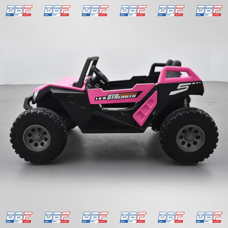 Nous avons l’habitude de débuter nos présentations par le design de l’engin, mais comme c’est un buggy pour enfant, on va d’abord insister sur les spécificités techniques de la bête. Ce buggy électrique 24 Volts est équipé de deux batteries de 12 Volts 7 Ah branchées en série afin de cumuler le voltage, et donc la puissance. Oubliez donc les pseudos “vendeurs” que vous trouverez un peu partout et qui polluent le marché avec des faux 24 Volts équipés de deux batteries 12 Volts montées en parallèle. Et si vous avez le moindre doute, posez-nous toutes vos questions sur Instagram, Messenger, Mail ou Téléphone.