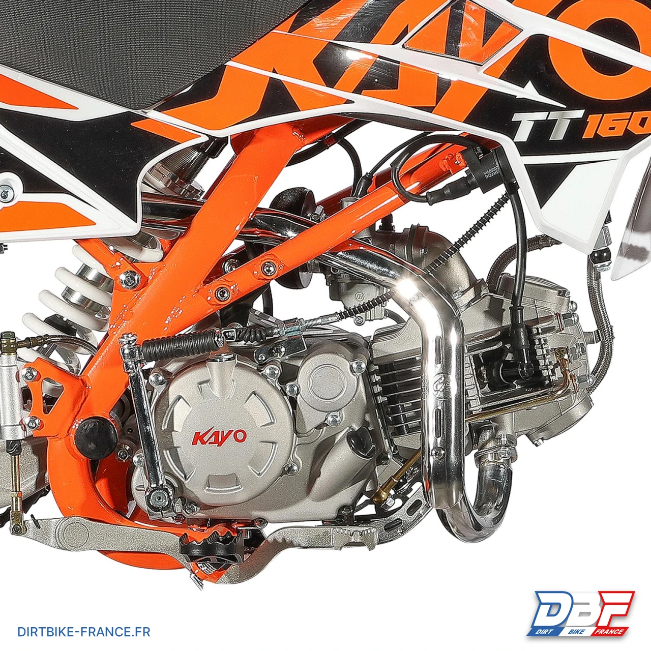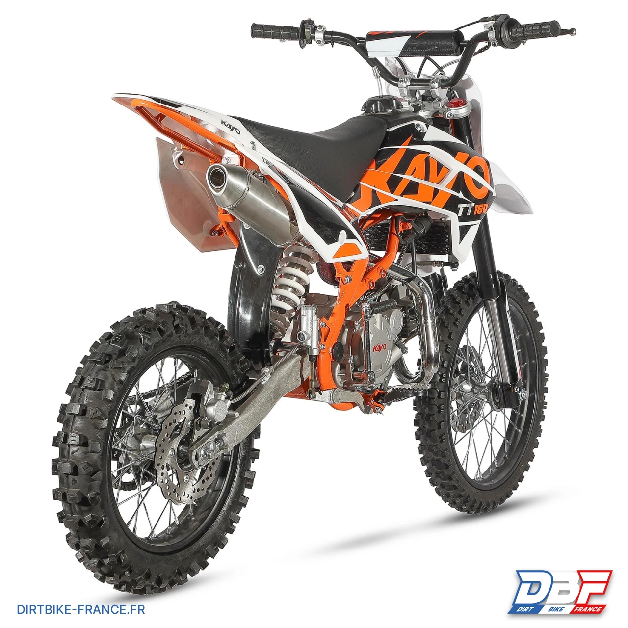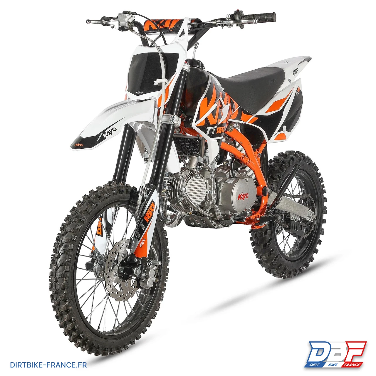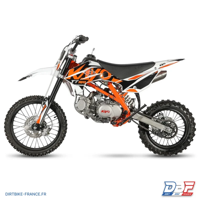 La dirt bike 160cc 17/14 KAYO TT160 est une toute nouvelle conception de chez KAYO, dotée d’un généreux moteur 160cc 4T à refroidissement par air. Avec ses 15CV de puissance et son couple de 15Nm, cette pitbike est idéale pour franchir tous les obstacles sans difficultés. Facile d’entretien, cette minimoto est équipée d’un moteur 4 temps avec une boîte de vitesse mécanique à 4 rapports. Les suspensions efficaces, la fourche inversée hydraulique en 730mm et l’amortisseur arrière en 360mm offrent un maximum de sensations en toute sécurité. Adaptée aux pilotes débutants ou confirmés, cette dirt bike KAYO 160cc est fiable, puissante et garantit un maximum de plaisir de conduite.