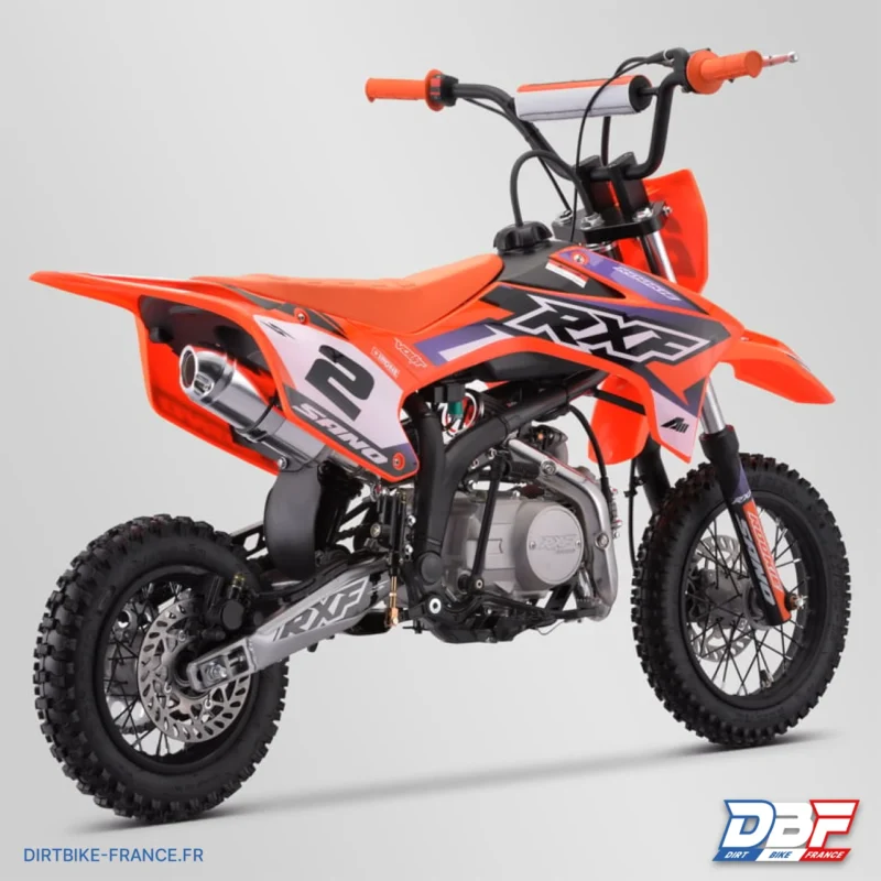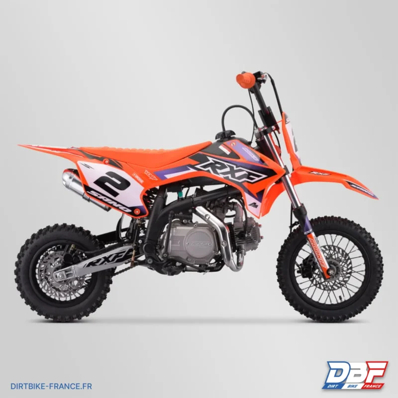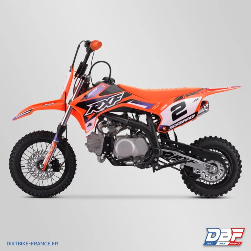 Préparez-vous à embarquer pour une aventure tout-terrain inoubliable avec la Dirt Bike Sano RXF Rookie 110 ! Ce modèle est conçu pour les débutants et les amateurs de tout âge à la recherche de plaisir et d’excitation sur les sentiers. Son cadre RXF moulé d’une seule pièce est le fruit d’une ingénierie de pointe, offrant une combinaison parfaite de rigidité et de légèreté. Cette conception garantit une stabilité exceptionnelle sur tous les terrains, permettant aux pilotes de défier les obstacles les plus exigeants en toute confiance. Sous le capot, le moteur 110cc nouvelle génération offre une puissance satisfaisante tout en étant incroyablement fiable. Doté d’une transmission semi-automatique, la moto est incroyablement facile à maîtriser, ce qui en fait la moto parfaite pour apprendre les bases de la conduite tout-terrain. Cette moto dispose d’une taille adaptée avec des roues de 10/12 pouces, ce qui la rend parfaitement équilibrée pour les jeunes riders en pleine croissance. Lorsque chaque seconde compte, la pédale de frein RXF, montée sur roulements de haute qualité, offre une réactivité inégalée. Elle passe audacieusement au-dessus du repose-pied pour un accès immédiat, vous permettant de maîtriser la puissance de la RXF Rookie 110 avec précision et sécurité, quelles que soient les conditions. Le bras oscillant RXF monté sur une cage à aiguille assure une suspension fluide et réactive, garantissant que chaque saut et chaque virage sont maîtrisés en douceur. En outre, le kit plastique RXF et les cale-pieds RXF ajoutent une touche de style unique développée en France en collaboration avec des pilotes chevronnés. La bavette intégrale de type KTM, en plus de conférer un look audacieux, protège efficacement votre moto des projections de boue et d’eau, prolongeant ainsi sa durée de vie. De plus, le sabot moteur court, une caractéristique rare dans cette catégorie, protège votre moteur contre les obstacles rencontrés sur les sentiers. Pour des performances inégalées, la RXF Rookie 110 est équipée d’une fourche simple et d’un amortisseur Volt, développés en France, qui garantissent une tenue de route exceptionnelle, même sur les terrains les plus accidentés. La Dirt bike Sano RXF Rookie 110 est bien plus qu’une moto tout-terrain, c’est une expérience de conduite inégalée. Avec ses caractéristiques techniques de pointe, elle incarne l’essence de l’initation hors route. Préparez-vous à vivre des aventures inoubliables avec ce bijou tout-terrain !