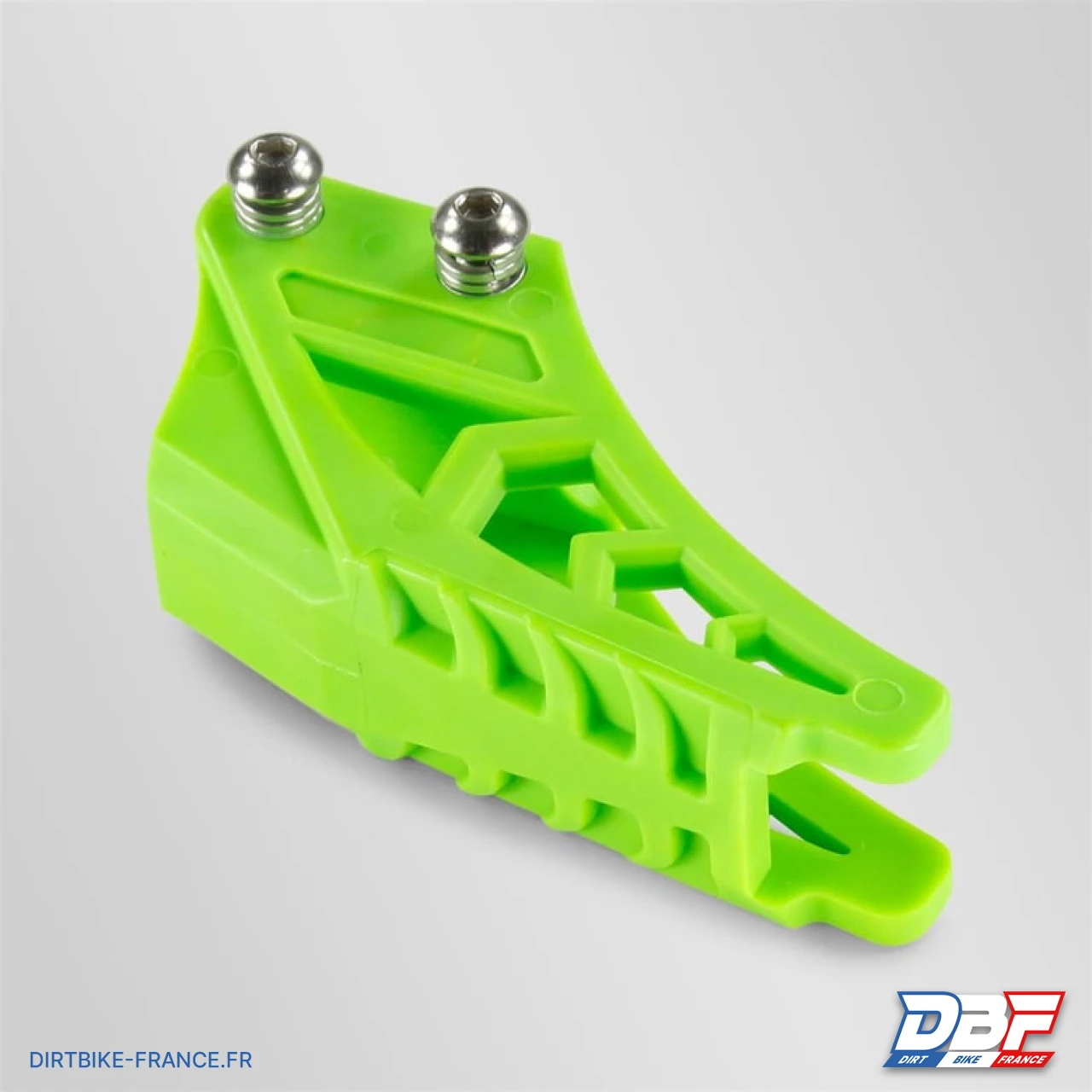 Ce guide chaîne racing vert universel Apollo est en plastique, s’adaptant sur tous les types de bras oscillant de Pit Bike et de Dirt Bike. Il est pourvu d’une armature en aluminium anodisé, assurant un guidage optimal de la chaîne. Grâce aux propriétés du téflon, ce guide chaîne offre une meilleure longévité et réduit les frottements. Facile à monter en lieu et place d’origine, ce guide chaîne est un excellent choix pour optimiser la performance de votre moto tout-terrain.