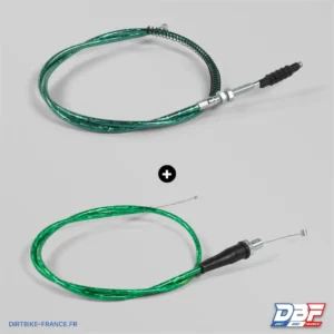 Apollo Motors France a travaillé avec les fabricants de câbles les plus reconnus pour proposer des câbles haute qualité. Ces câbles ont un étirement faible, et une durée de vie excellente ! Ce câble est en acier inoxydable et enveloppés d’une gaine externe noire en vinyle. Il possède aussi une gaine intérieure recouvrant le fil procurant un mouvement de câble avec un minimum de résistance pour une réponse immédiate des commandes. Ce pack comprend : 1x câble d’accélérateur, couleur au choix : Noir, Jaune, Vert, Rouge, Bleu 1x câble d’embrayage démarrage en prise au choix : Noir, Jaune, Vert, Rouge, Bleu. Profitez du Pack câble d’accélérateur + câble d’embrayage pour Dirt Bike, Pit Bike à prix mini.