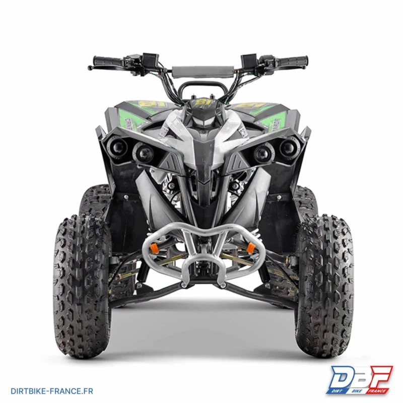 Nouveauté dans la gamme des quad enfant 125cc : le CANADA 125cc de chez XTRM Factory 81 ! Quad 125cc très fiable, il se démarque d’un quad d’entrée de gamme par une qualité et une finition supérieure. Cette gamme quad enfant 125cm3 ne rougit pas de la comparaison avec les grandes marques japonaises ! Le quad enfant Canada est très largement équipé : Quad enfant avec freinage arrière hydraulique à disque. Des freins à tambour à l’avant équipe ce quad enfant 125cc. Quad 125cc avec démarrage électrique. Ce grand quad enfant a aussi un très bon système d’amortisseurs avant et arrière : la machine est souple sur tous terrains. Ce puissant quad 125cc est équipé d’un démarreur électrique, vous admettrez que c’est bien mieux et plus facile à utiliser qu’un démarrage au lanceur. Enfin le quad enfant XTRM Factory 81 dispose d’une boite semi automatique 3+1 (3 vitesses + marche arrière) : simple à piloter mais très efficace ! Pour cette série : nouveau design, nouveaux crampons : plus de grip et une meilleure qualité ! Un quad 125cc fiable au meilleur rapport qualité/prix Pour nos clients les plus exigeants voici une toute nouvelle gamme de quad enfant XTRM 81, spécialement conçue pour des enfants et pour faire du tout terrain. Ce quad enfant automatique est équipé d’un très bon moteur 4 temps de 125cc. Très facile à prendre en main grâce à sa boite semi-automatique avec une marche arrière : Il suffit d’enclencher le sélecteur et de se concentrer sur le pilotage : le quad enfant 4 temps idéal, très simple, mais terriblement efficace ! Plusieurs points forts pour ce quad 125cc ado dont le châssis renforcé, les grandes roues cross 8 pouces, freinage hydraulique arrière ainsi qu’un système d’amortissement au top. Des performances au top ! S’il offre des performances au top pour les pilotes expérimentés, ce quad enfant 125cc Canada est aussi adapté aux novices : vous limitez la puissance d’une simple vis au guidon : la simplicité et la sécurité avant tout pour plus de plaisir de pilotage ! Tout ceci sans compter les petits plus qui font la différence : Assise confortable Un quad 125cc fiable Démarrage au quart de tour à la première sollicitation Accessibilité des parties mécanique et électriques pour un entretien facile Très fiable en pilotage et en entretien, performant et précis, le quad enfant Canada 125cc est un excellent rapport qualité / prix !. Détails techniques : Type Moteur : Monocylindre 4T Refroidissement : Air Cylindrée : 125cc Démarrage : Électrique Embrayage : 3 Vitesses Semi-Automatique Boite de vitesse : 3 + 1 Transmission : Chaîne Alternateur : Oui Limiteur de vitesse : Oui Marche Arrière : Oui Homologué Route : Non Vitesse : V.max Frein avant : Tambour Frein arrière : Hydraulique à disque Pneus avant : 19×7-8 Pneus arrière : 18×9.5-8 Empattement : 960 mm Type Carburant : Sans plomb 98 Age : à partir de 8 ans Hauteur de selle : 710 mm Poids : 108 kg Charge Maxi : 75 kg Dimensions (longueur x largeur x hauteur) : 1500 x 900 x 940 mm Dimensions caisse (longueur x largeur x hauteur) : 1370 x 830 x 660 mm Marque : XTRM FACTORY 81 Garantie : 3 mois pièces et main d’oeuvre en nos ateliers hors usure et transport